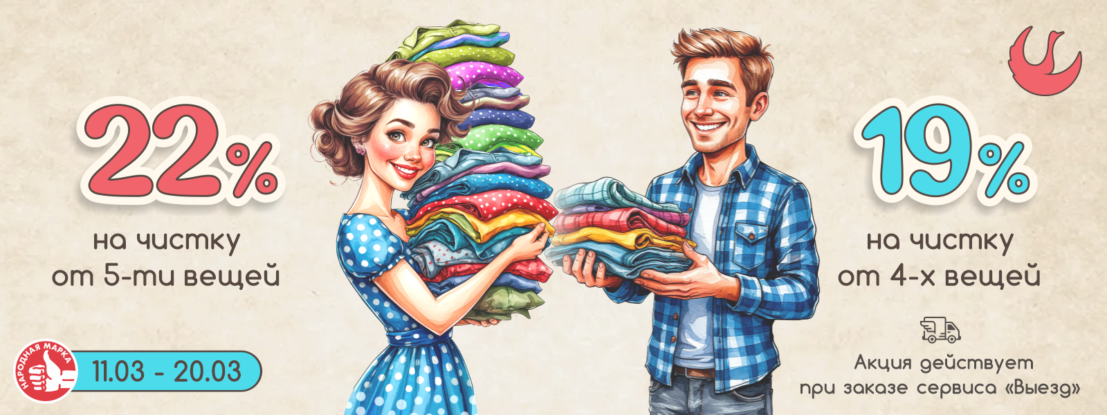 - скидка 22%  на чистку от 5-ти вещей.